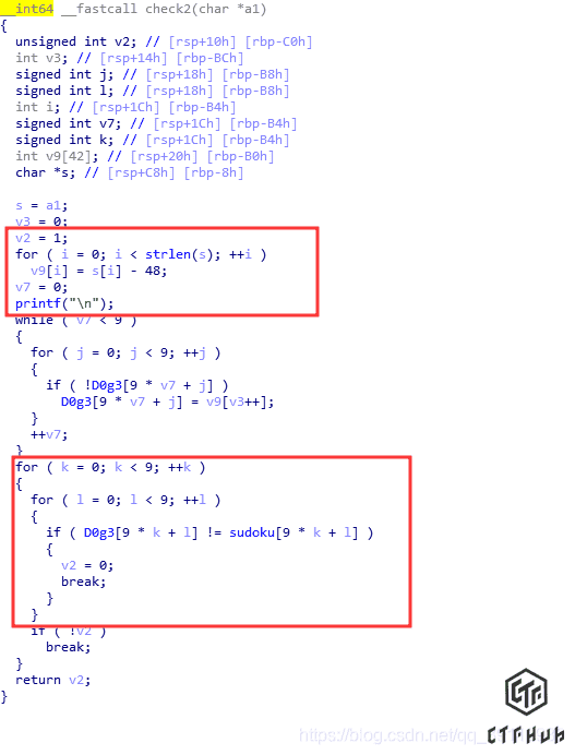 解题的关键就是找到原来的数独,和填好的数独,提取填好的数字,然后做check1中的逆向操作就可以得到flag