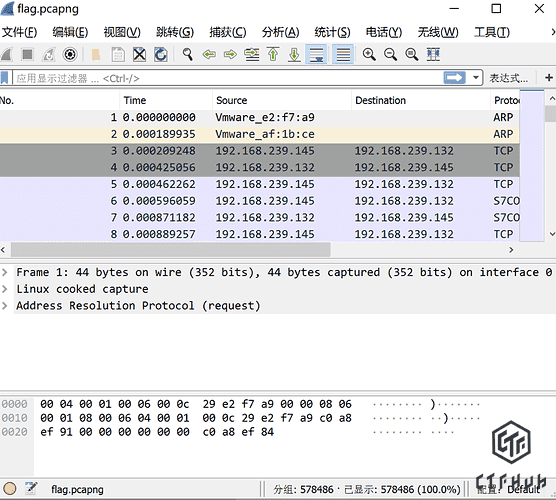 下载题目所给的flag.pcapng,发现有57万个包,还是蛮多的。
