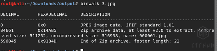 使用该字符串解压刚才的压缩包,得到3.jpg文件,使用 binwalk 查看依旧存在 ZIP 文件,于是继续分离出来: