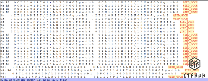 然后纯粹靠眼力,使用正则表达式将其筛选出来,得到flag