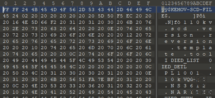 这其实是凯默scd分析软件的kscd文件,文件头还加了两字节垃圾数据。出题人将所有的00都修改为了20,导致文件无法被凯默scd软件正常解析,因此只能从字符串中寻找规律。