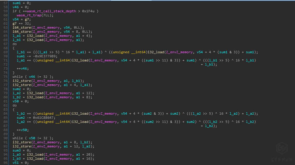 xtea加密 输入38字节。前32字节经xxtea加密。38字节与硬编码数据校验。 38字节校验数据(hex):959668e7b75517c9ad031ecf6fc5614b0290fd2d22ed0a93307ec9ec8c96b1e065363862627d前32字节直接xtea解密即可。