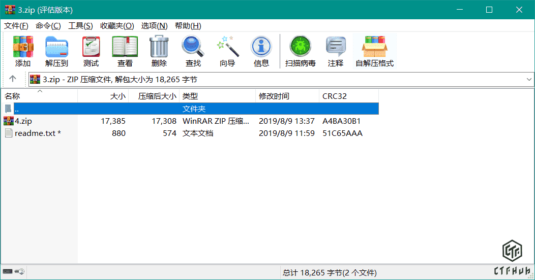 4.zip内也有readme.txt,猜测可能是明文攻击,把readme.txt压缩成zip,对比CRC32,确认是明文攻击