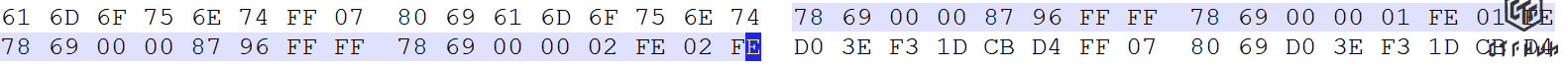 金额是两个字节存储,按4字节为一组,前俩字节是数据,后俩字节是校验,校验方式为异或