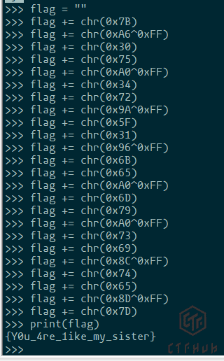 1 | flag{Y0u_4re_1ike_my_sister} |