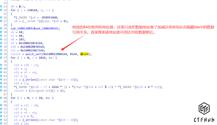 来到关键函数,首先创建了一个线程函数,对flag{i_am_not_right_but_i_believe_you_can_find_out_what_happened}字符进行快速排序后对程序中的2个码表进行异或解密。