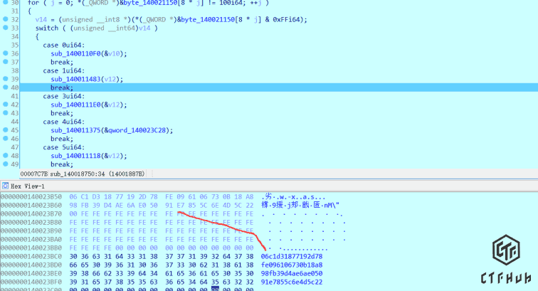 ida载入,从字符定位到一个假的流程,但可以从base64字符串上面的数据表定位真实流程的一个分支再不断往前找引用来到main函数: