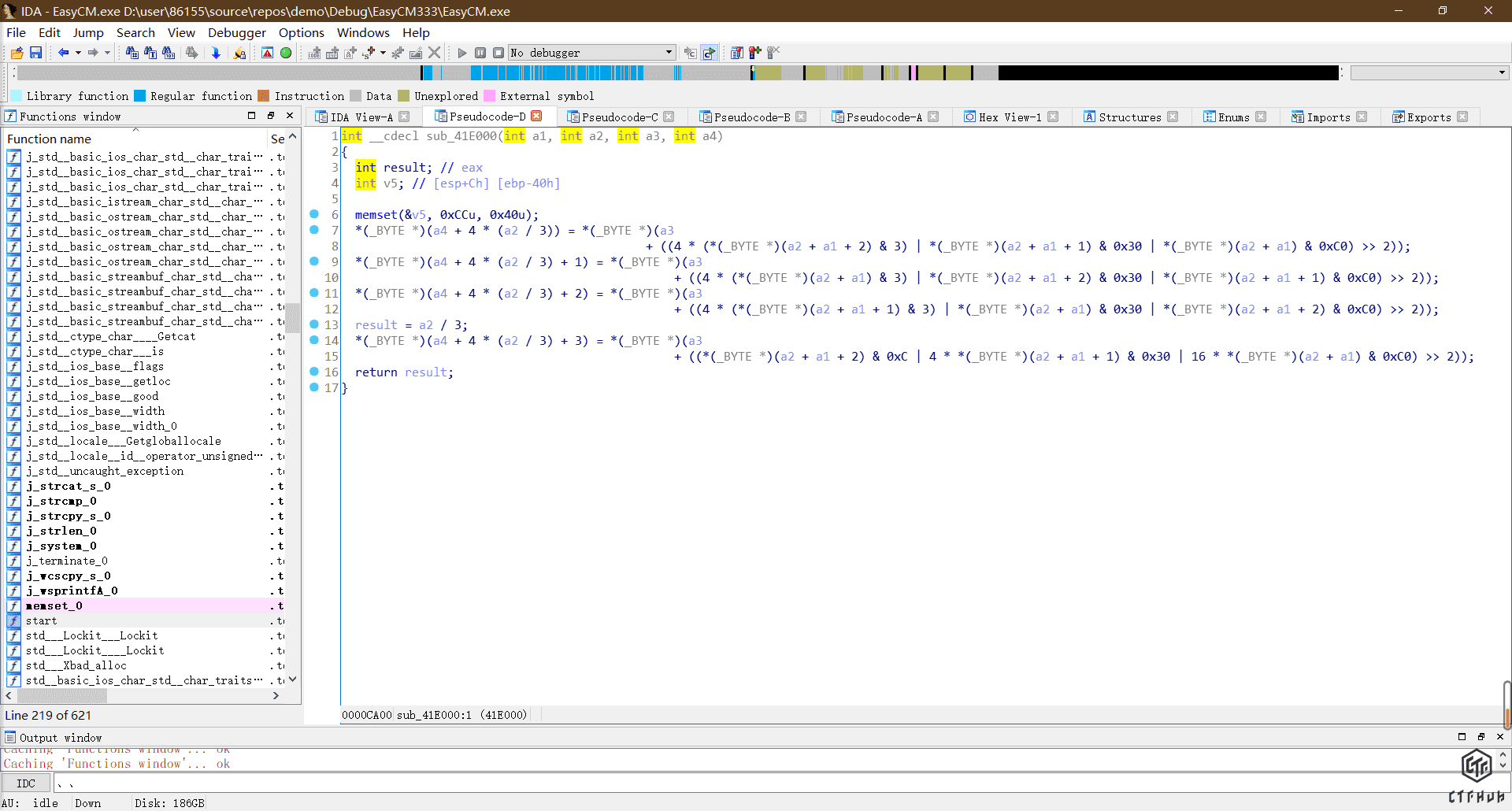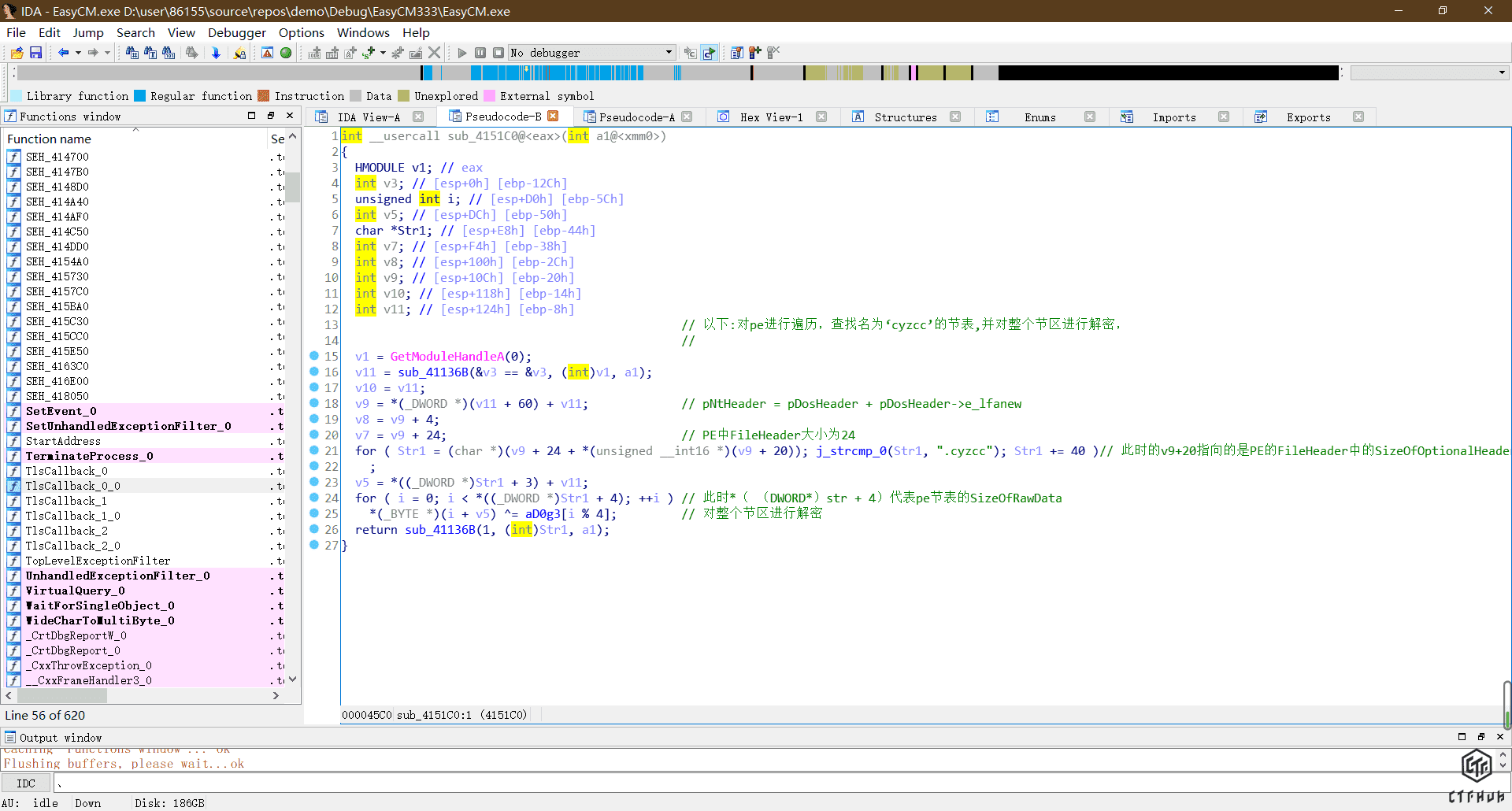 或者手动对PE文件中的节区(节区名:‘.cyzcc’)数据进行解密。(解密之后的代码也添加了花指令,需要去除一下)