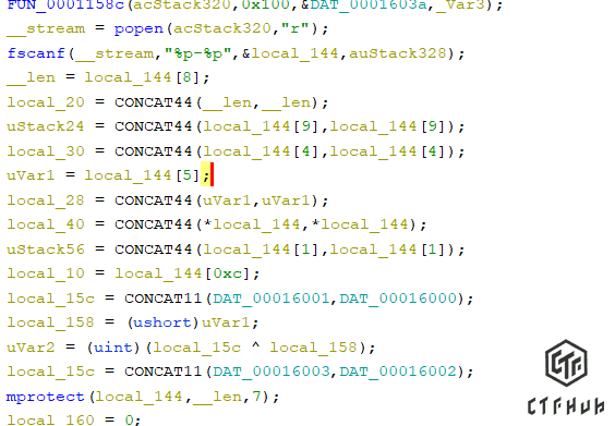 发现fscanf的输入格式是%p-%p,应该是从maps中寻找地址用的。同时发现这个函数是init_array函数调用的一环。