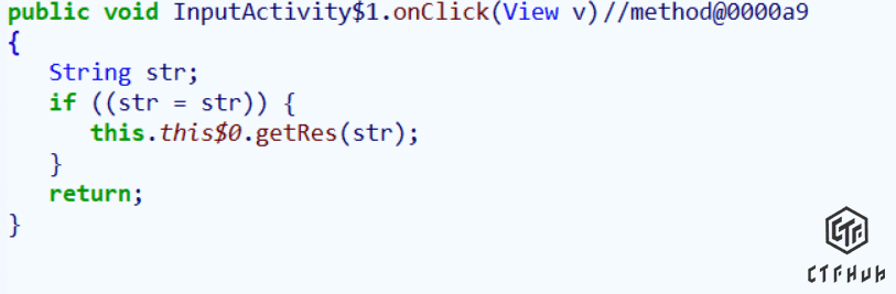 发现按钮会调用getRes方法,跟踪发现getRes是native方法,还找到了提示flag是否正确的方法。