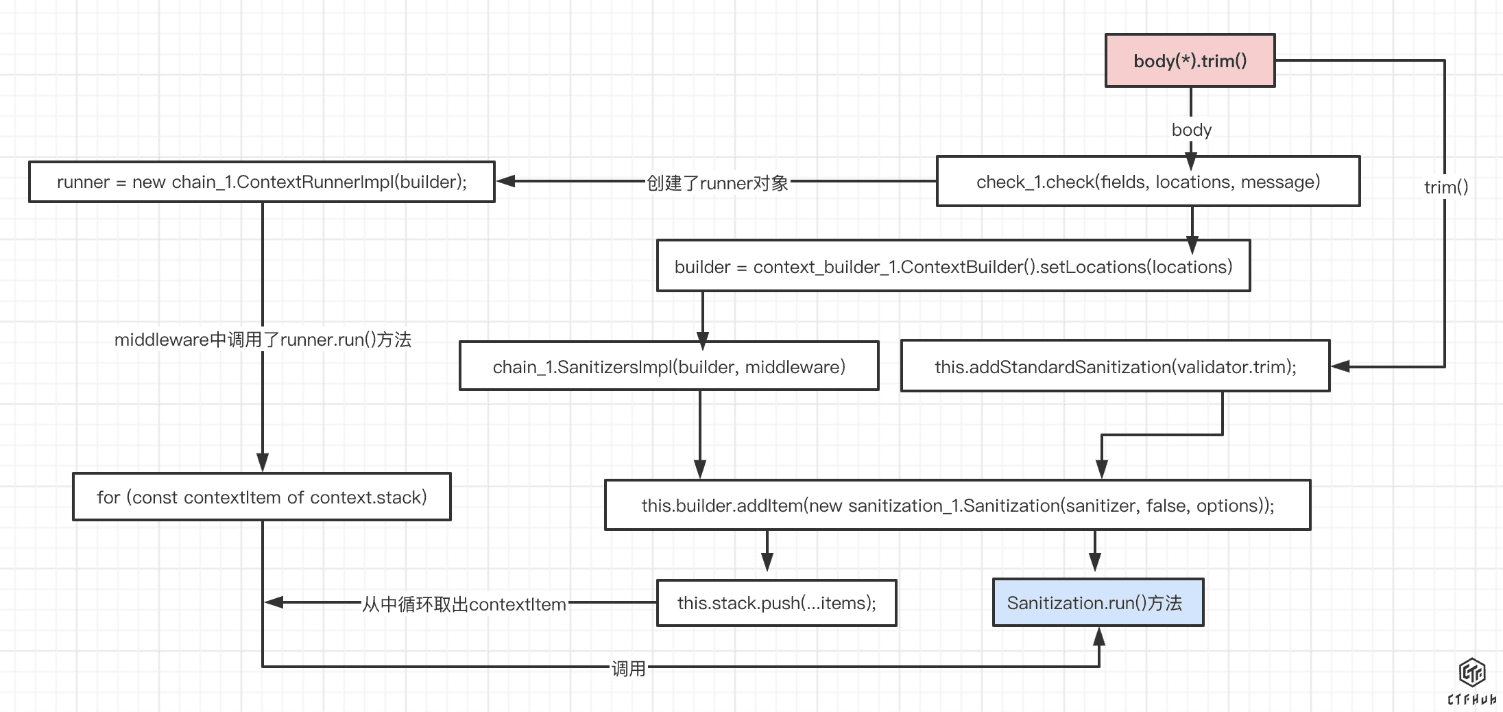 这个Sanitization类中的run方法最终通过调用sanitizer方法设置了context的值。(context后面的处理过程在漏洞分析部分)