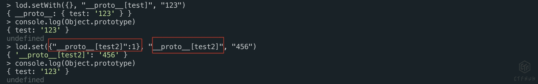 原因是因为,当lodash.set中第一个参数存在一个与第二个参数同名的键时,污染就会失败,测试如下: