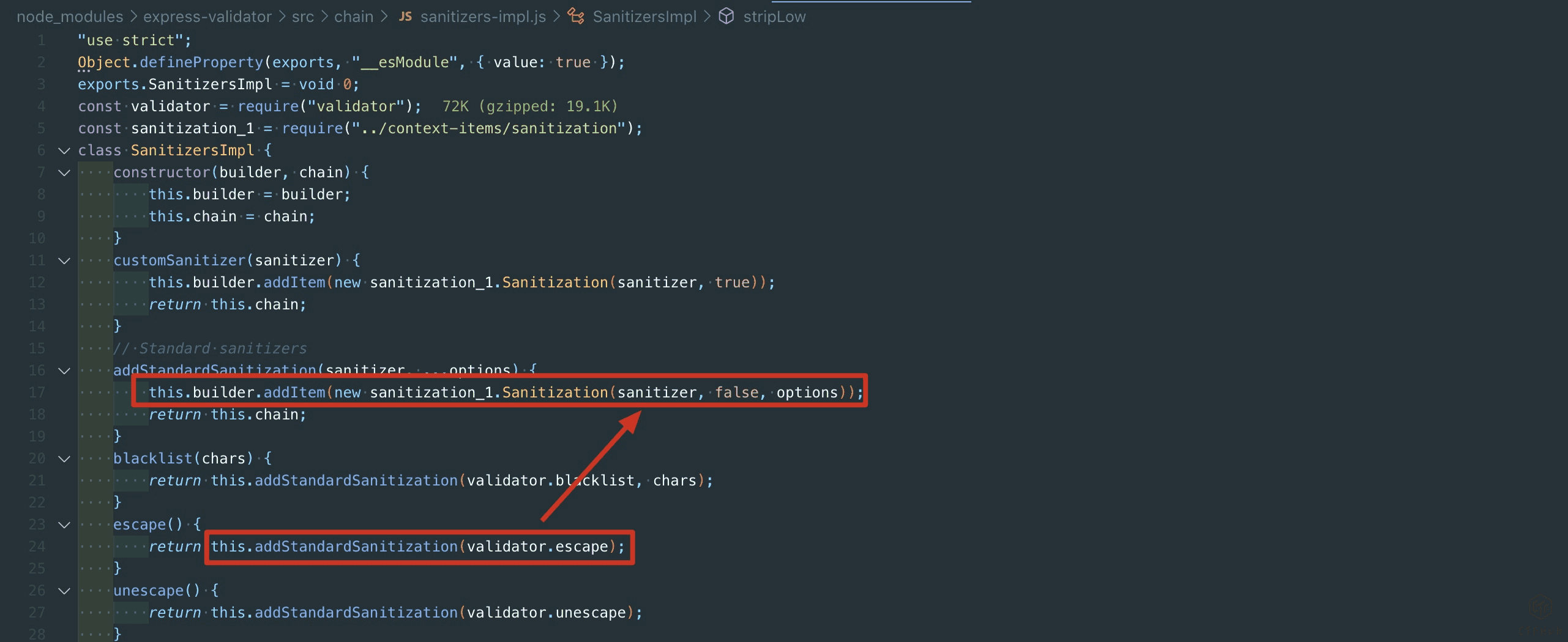 传入bindAll的参数值是通过Chain_1.SanitizersImpl返回的,可以通过chain.js确定到这个函数的定义位置为src/chain/sanitizers-impl.js。