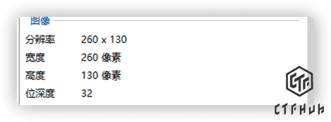 如上图,130对应为0x82,260对应为0x104,只需要在winhex中把0082改成0104,即可把高度也调成了260像素。