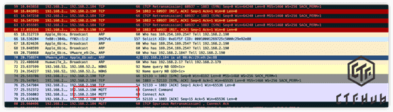 对流量包进行分析,发现其中有mqtt协议的数据包。