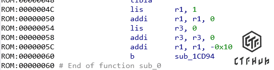 现在回到我们之前看的固件头部代码处,这段代码相当于是先将栈地址设置为0x10000,将第一个参数(r3寄存器)设置为0x0,随后在栈上开辟0x10个字节的空间后跳转到当前地址+0x1cd34处执行。
