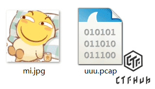 分离出的压缩包打开后有一个 mi.jpg 和一个流量数据包。