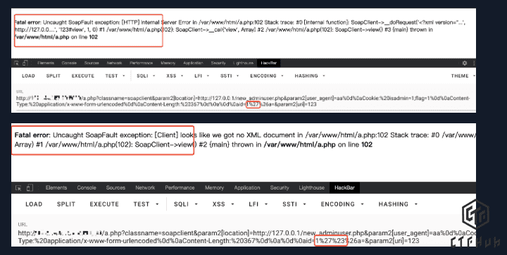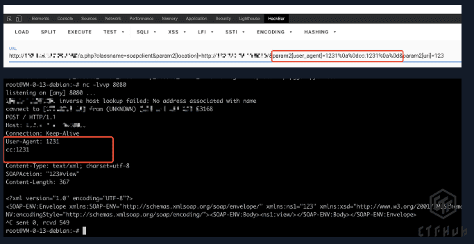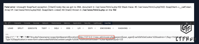 但soapclient只能传递get参数,post为自己生成的xml数据,不可控,但soapclient可以自己配置部分请求头如user_agent,并且存在CRLF问题,比如
