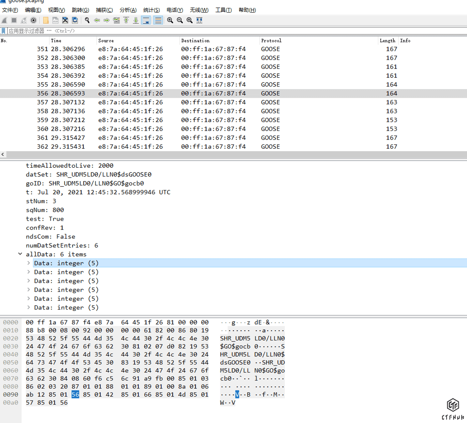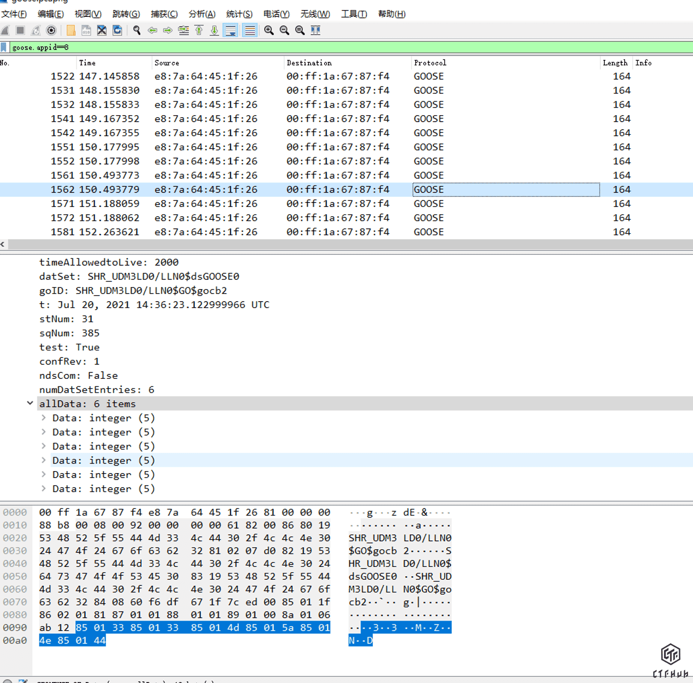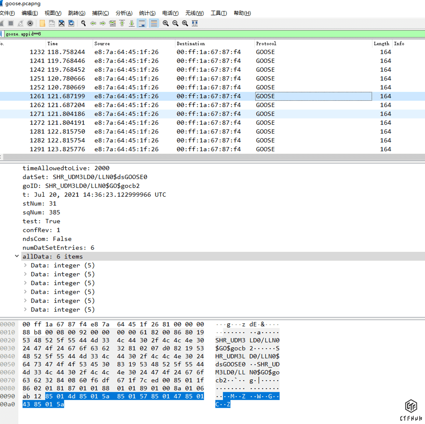 分离出goose包,发现所有PDU 的data值都是VBfMWV