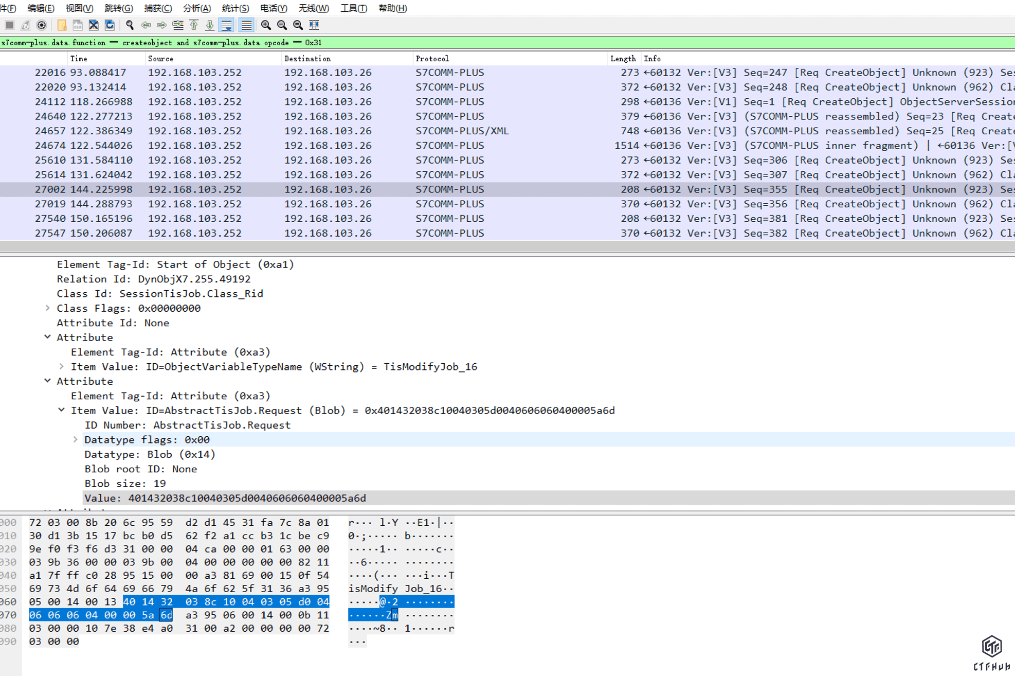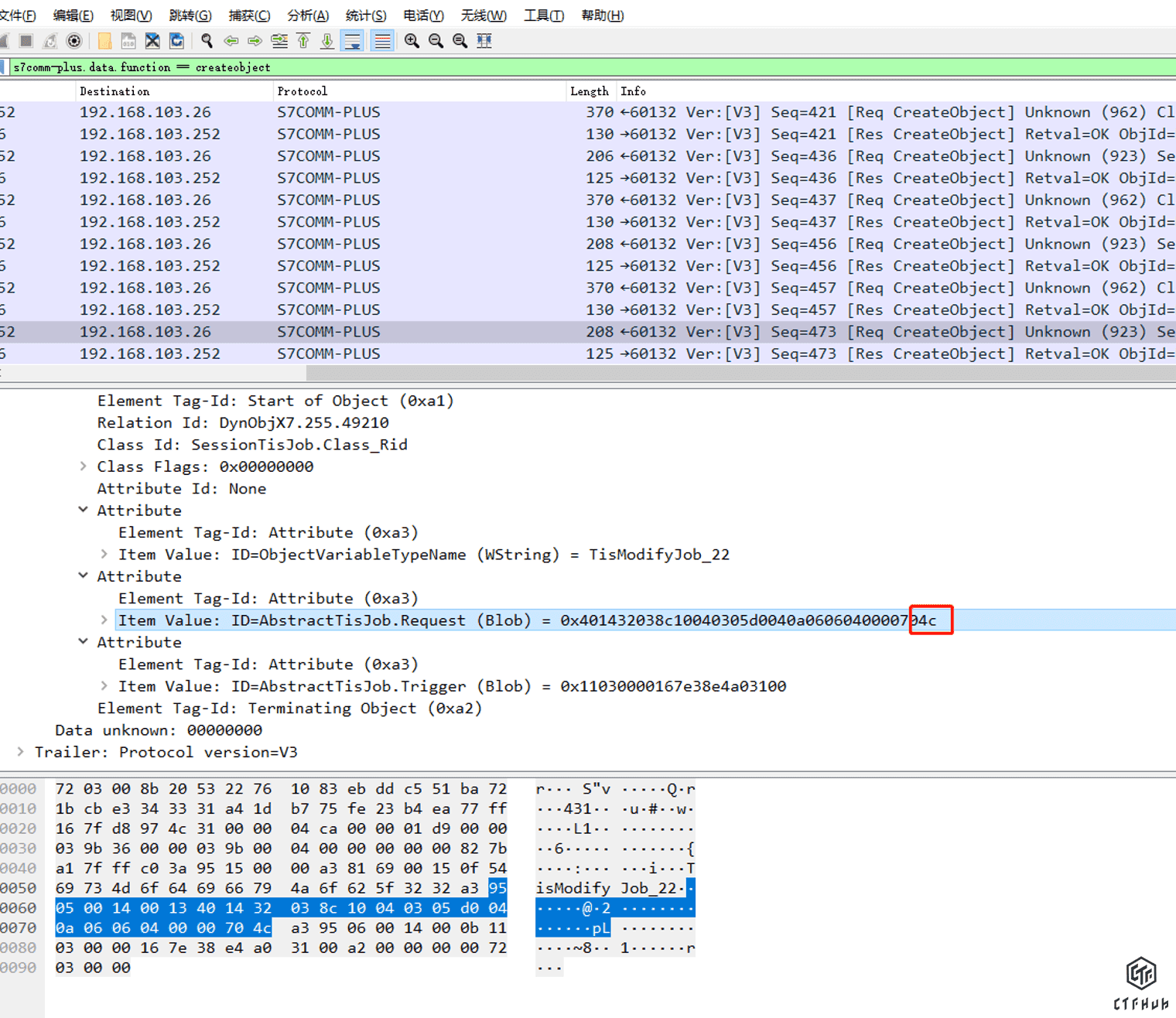 过滤s7comm-plus.data.function == createobject,发现有写操作