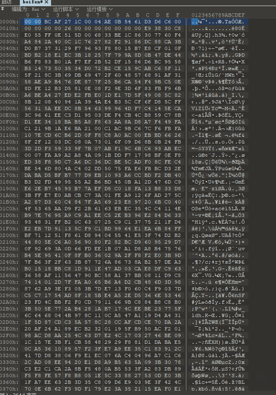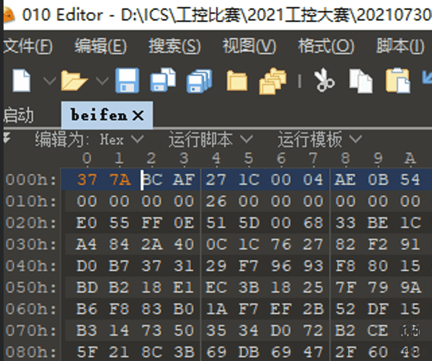 发现binwalk发现隐写的数据,其中有beifen文件,发现7z文件头格式,少了377A
