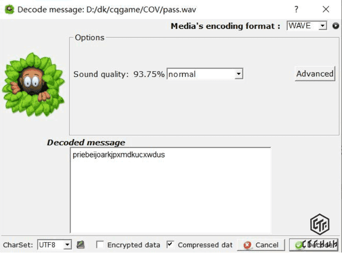 1 | Decode.exe -X -P 98eb1b1760bcc837934c8695a1cee923 cov.mp3 |