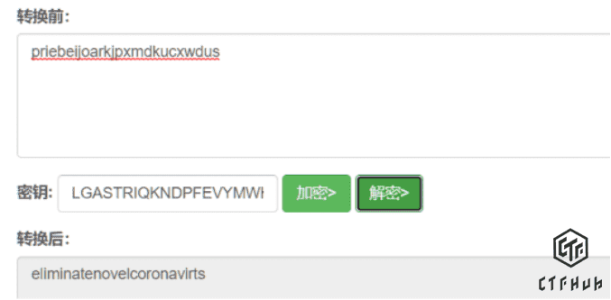 根据秘钥和密文,解出密码,这句话的意思也是消灭冠状病毒。然后steghide隐写
