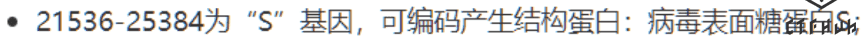 我们得知S基因的区间是21536-25384 https://www.ncbi.nlm.nih.gov/orffinder/