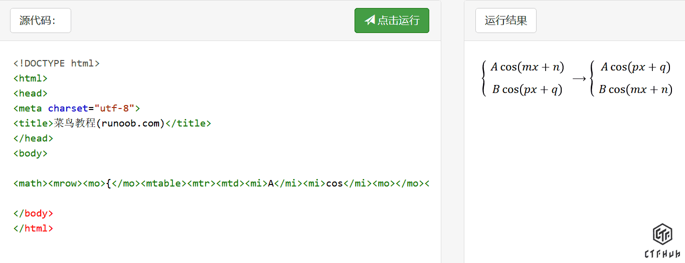 查了一下是Mathematical Markup Language (MathML),在菜鸟教程在线编辑器跑一下可以看到: