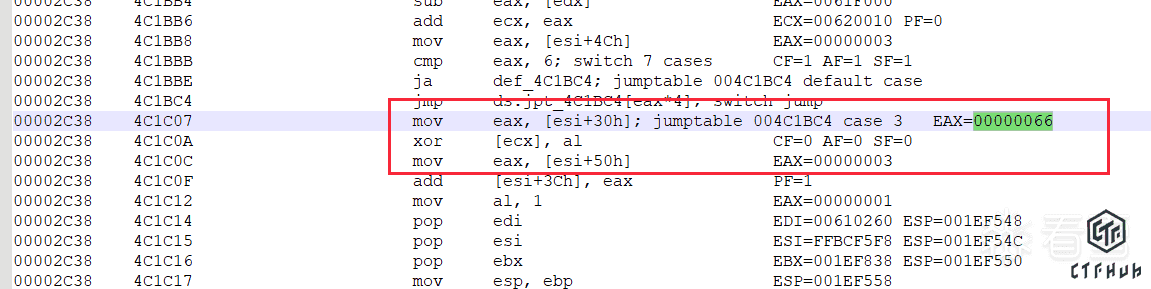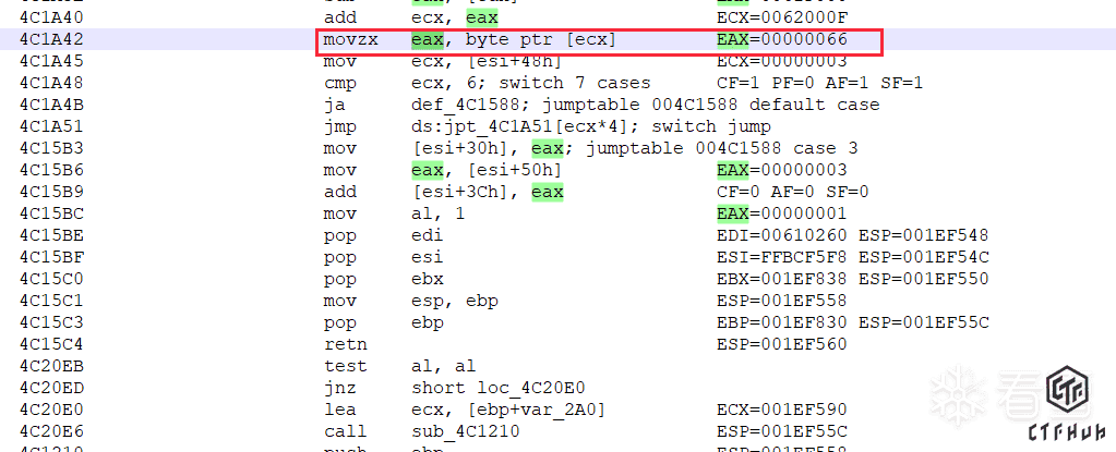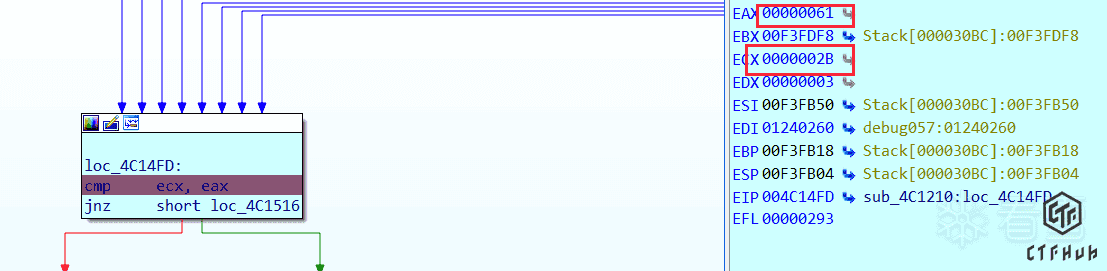 使用IDA指令跟踪可以快速分析指令执行,当数据编码完成后开始对比数据