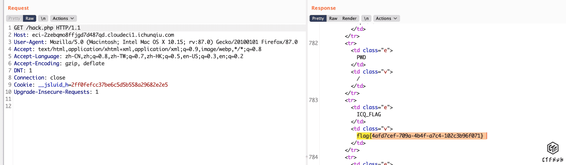 传入的code会直接写入hack.php,但是有一些过滤,直接写入phpinfo()