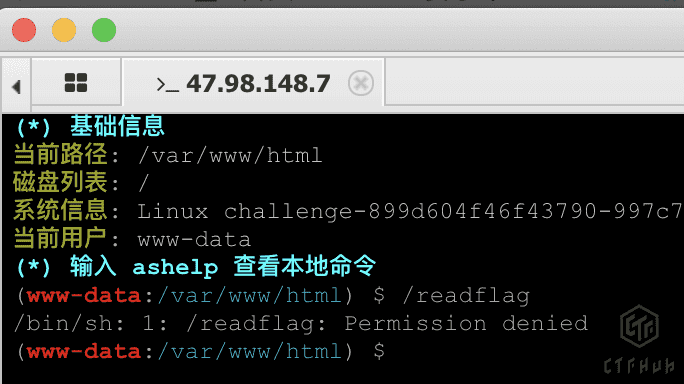 结合题目给出无需提权,且咱们在webshell里直接/readflag 权限不够。