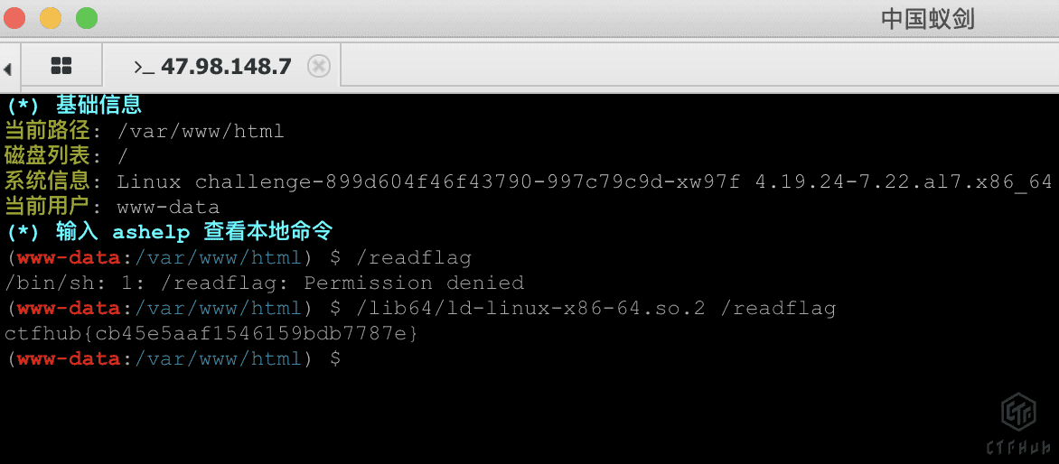即命令:/lib64/ld-linux-x86-64.so.2 /readflag 即可获取flag