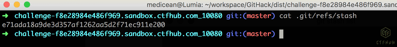 1 | python GitHack.py http://challenge-f8e28984e486f969.sandbox.ctfhub.com:10080/.git/ |
