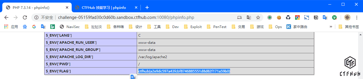 之后在 PHP Variables 分类下的 $_ENV["FLAG"] 找到flag