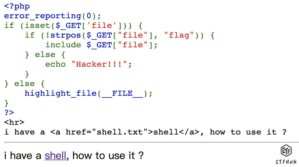 访问之:http://challenge-d8e3b3e0b906f358.sandbox.ctfhub.com:10080/shell.txt