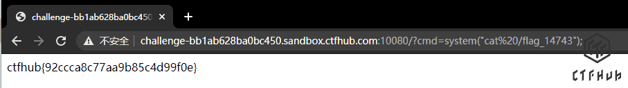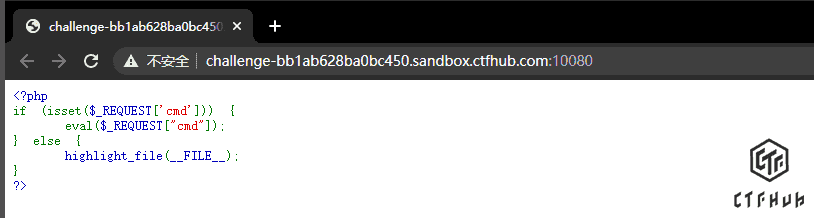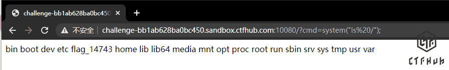 尝试在URL中带上名为cmd的参数:(此处system()函数的作用为执行系统命令并输出执行结果)